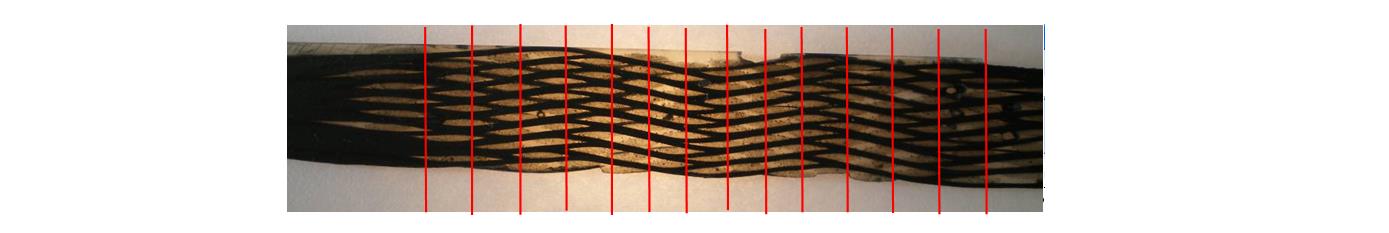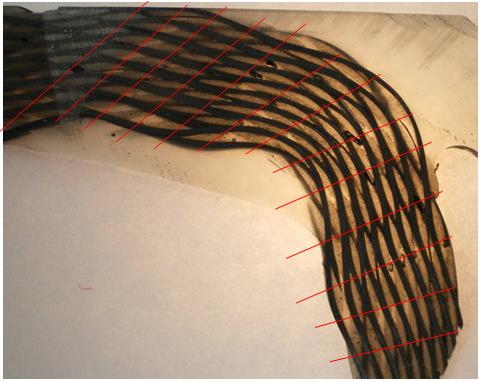 Different folding angles have been applied on the 3D warp interlock fabric to observe the fabric deformation in the warp direction by checking the evolution of the weft yarns columns position.