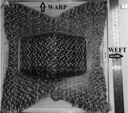 Considering the 3D warp interlock fabric made with 6K carbon warp yarns (200 Tex) and RC14 320 P109 fiberglass weft yarns (320 Tex):